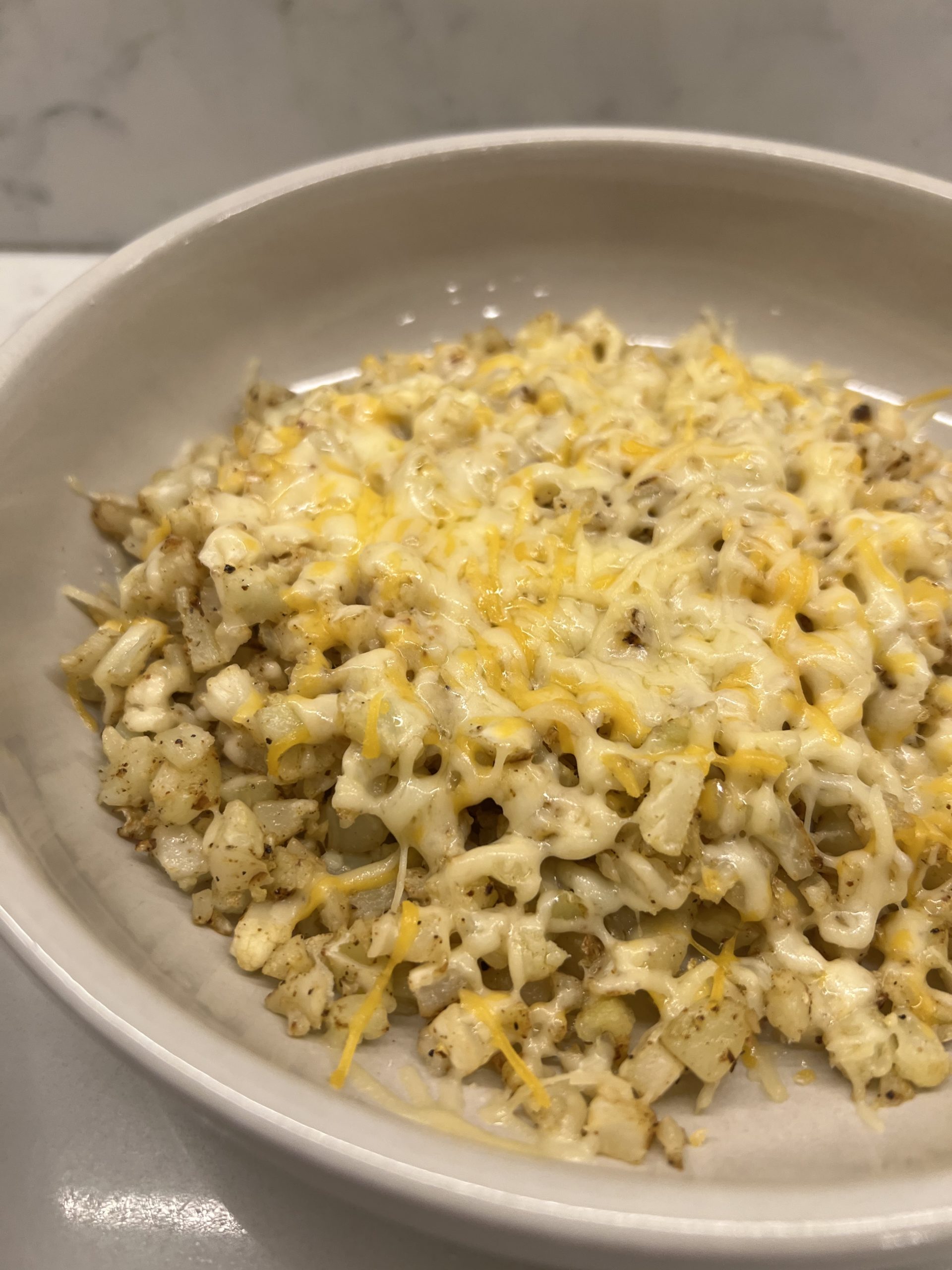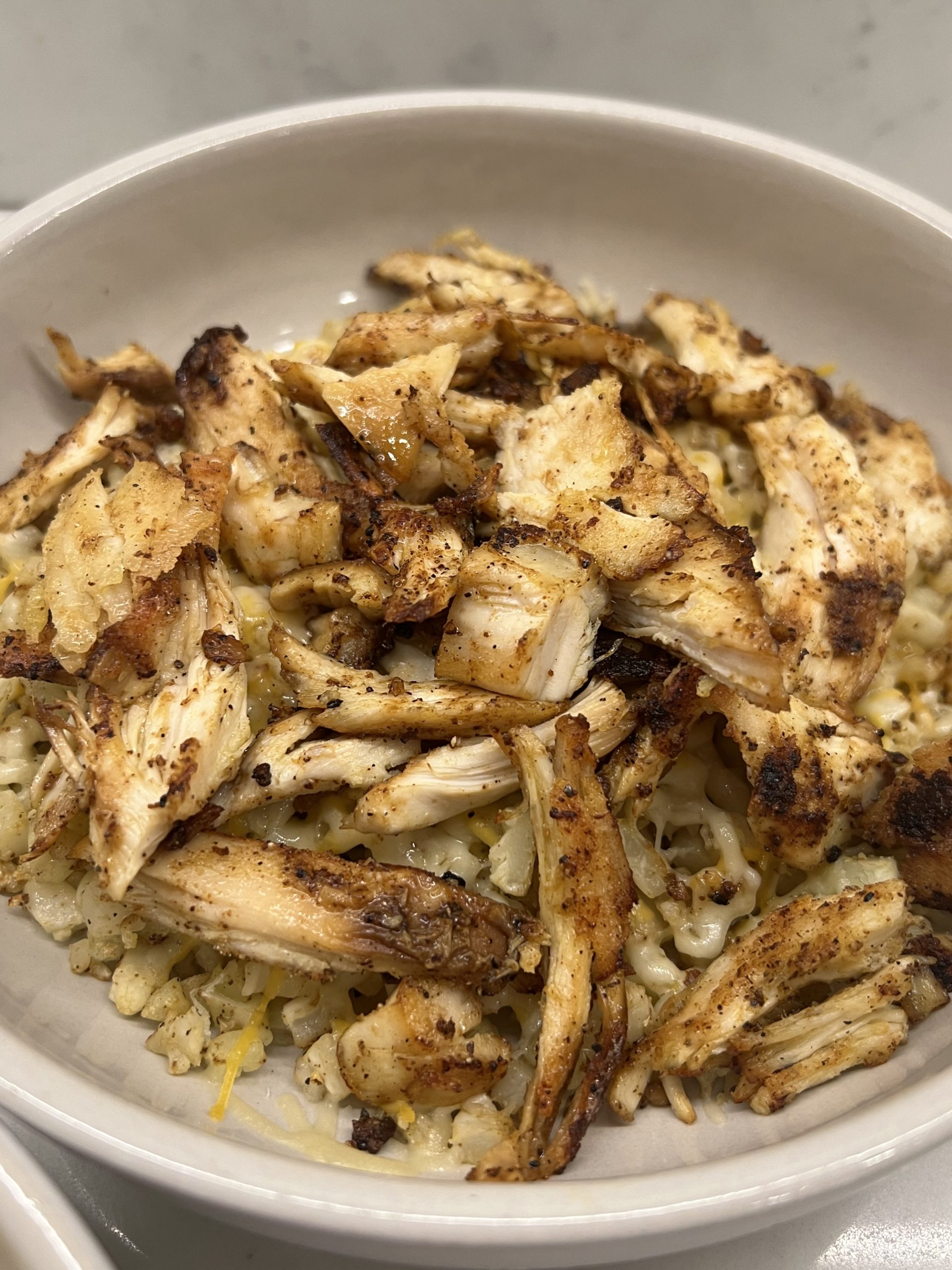 Make your bowl! I liked cheese over my cauliflower rice, and microwaved for a few seconds until it melted. Then added the rest of the ingredients!!