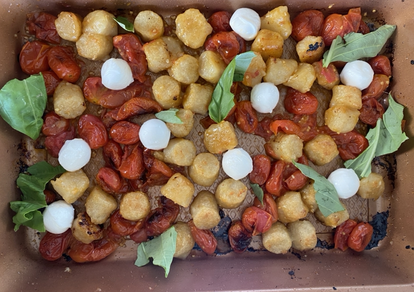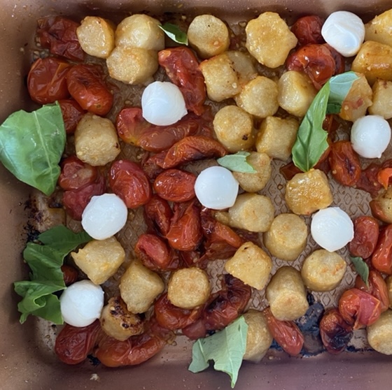 If you guys have been following me for a while now, you know how much I love a good veggie sheet pan veggie situation! Love roasting all of my favorite vegetables with some olive oil and seasoning and getting them nice and crispy and flavorful in the oven! AND I also love cauliflower gnocchi so I decided to mix these two ideas together and do a one pan caprese cauliflower gnocchi bake and oh my goodness it came out SO GOOD!!!!