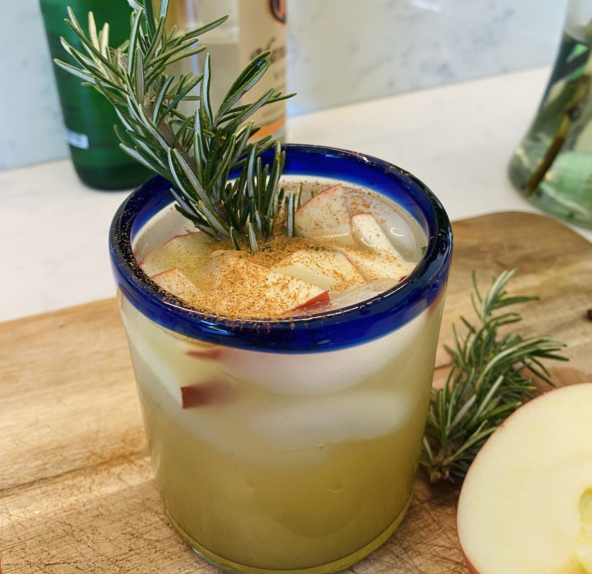 A fun and festive cocktail to try this fall! Here’s what you need: 1/2 cup apple cider (I used the Spiced Cider from Trader Joe’s but