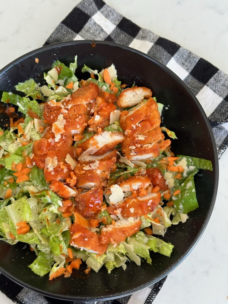 A quick lunch idea with not too many ingredients needed! I’m obsessed with buffalo chicken AND Caesar salads.. so combining them just makes sense🥗 Simply elevate your Caesar salad with crispy buffalo chicken tenders and carrots for good nutrients and crunch!!!! My gosh… I want this every day🔥 it’s so easy, too!!!