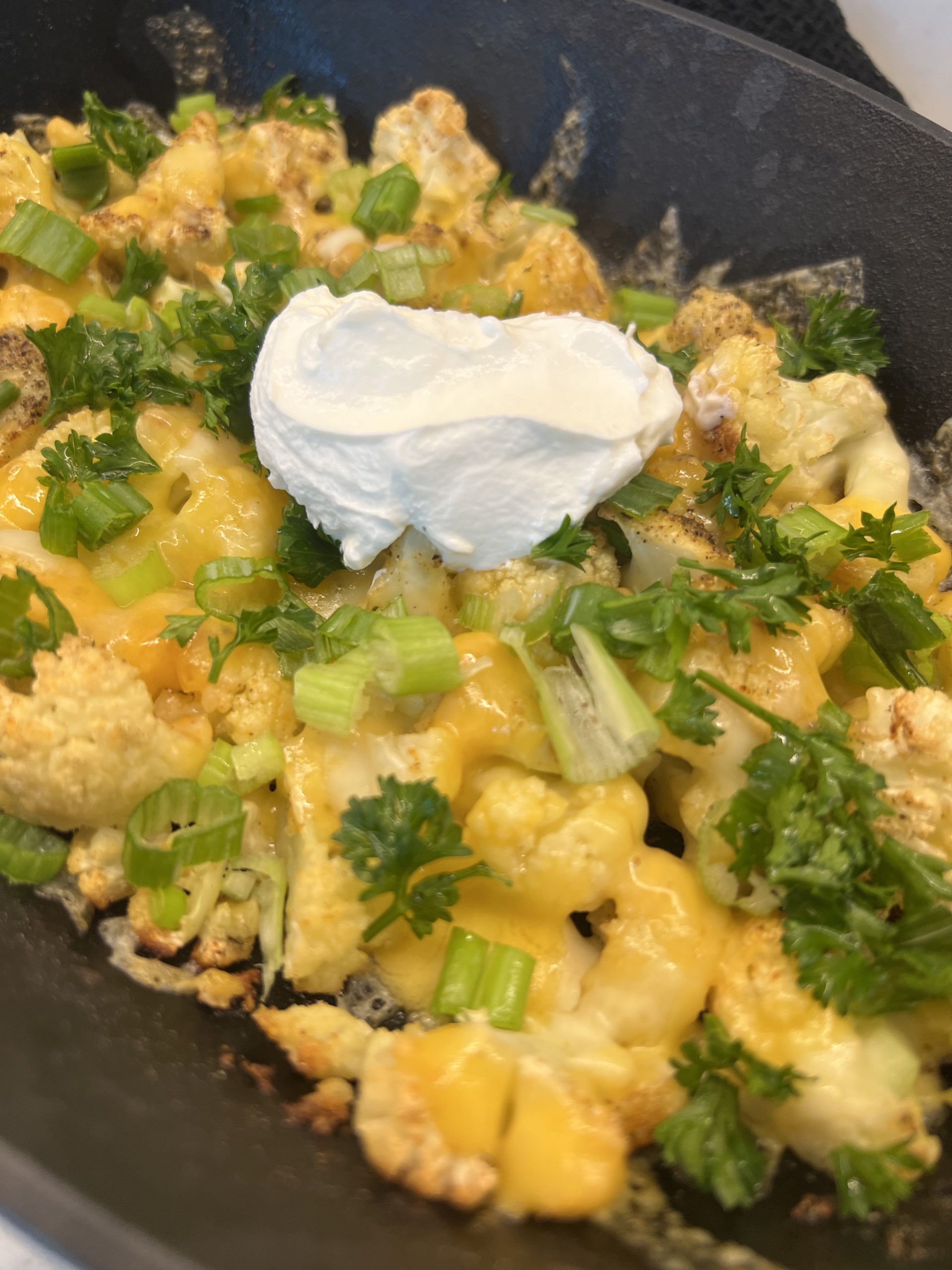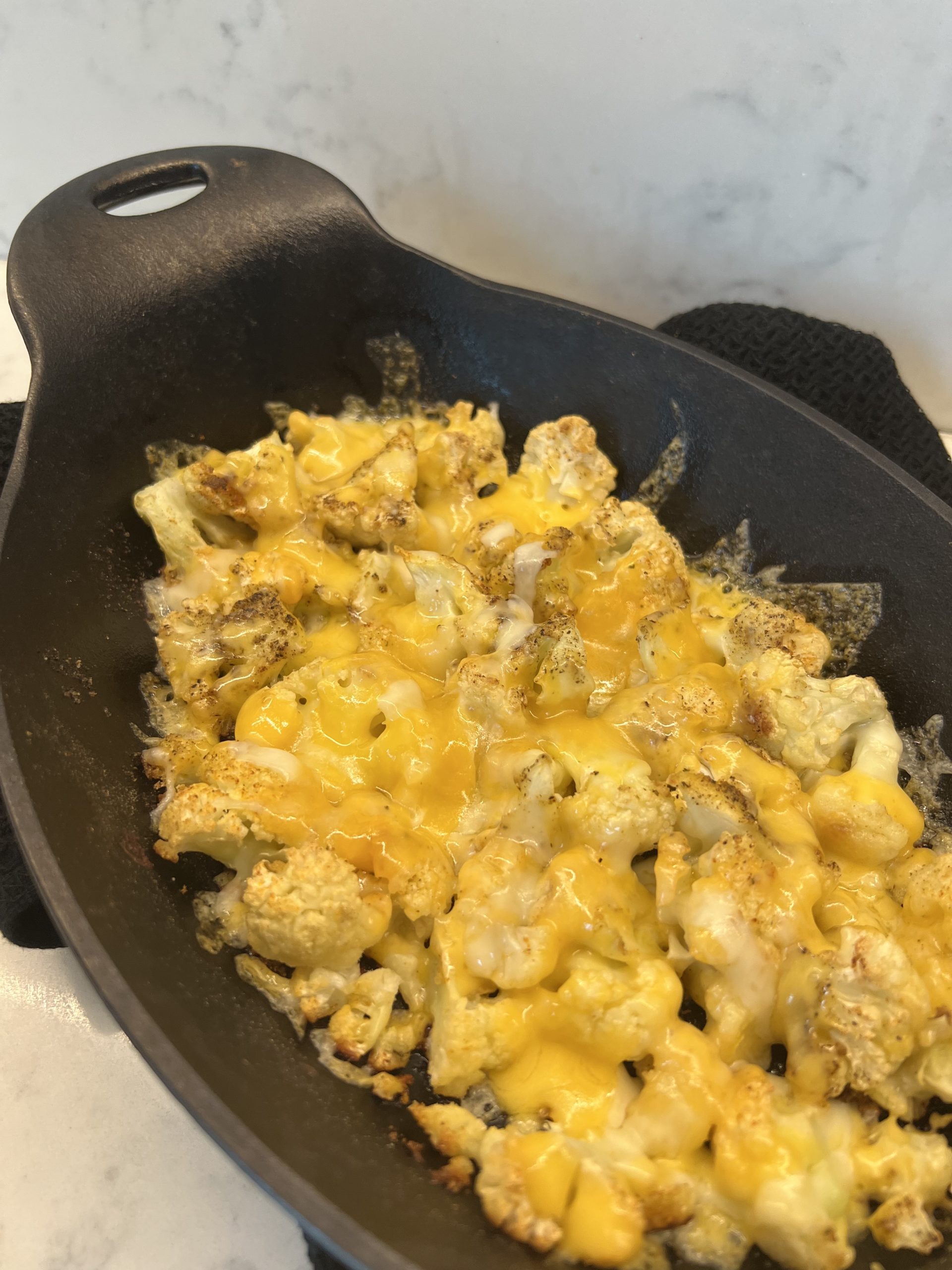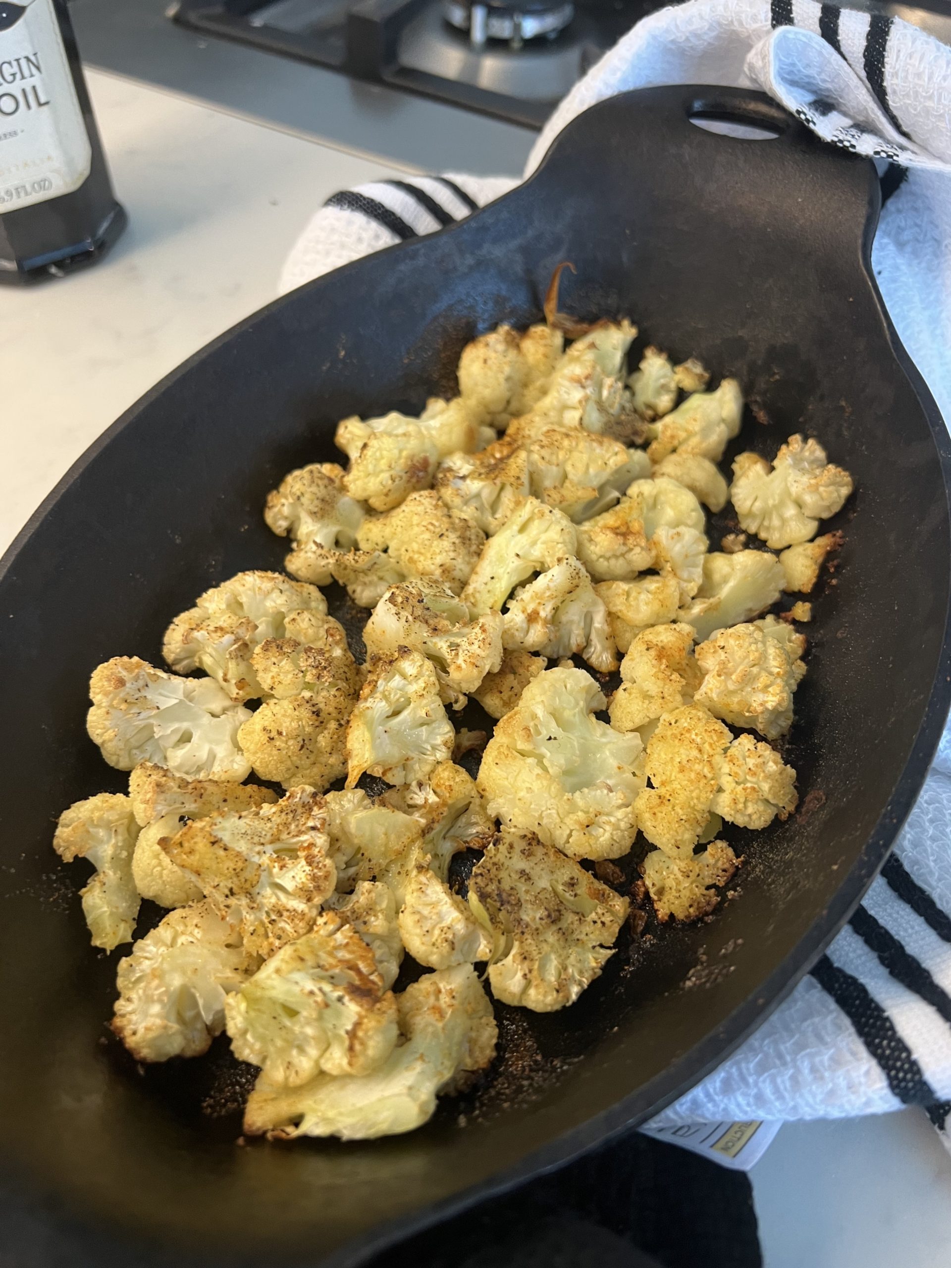 Bake your cauliflower at 400 degrees for around 30 minutes. (i did 34 min)