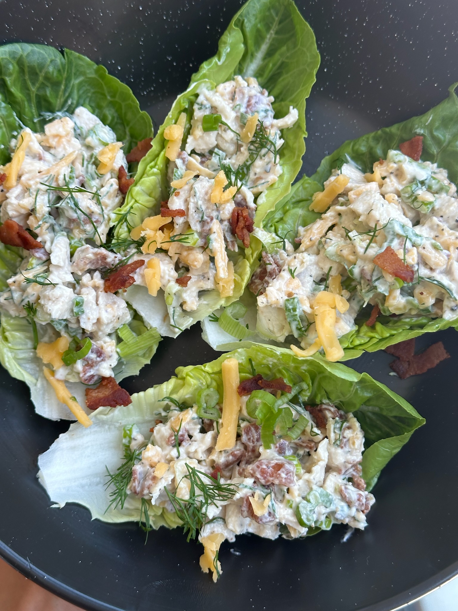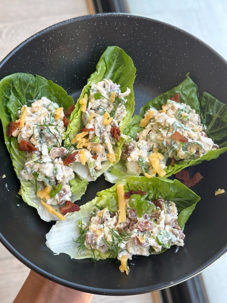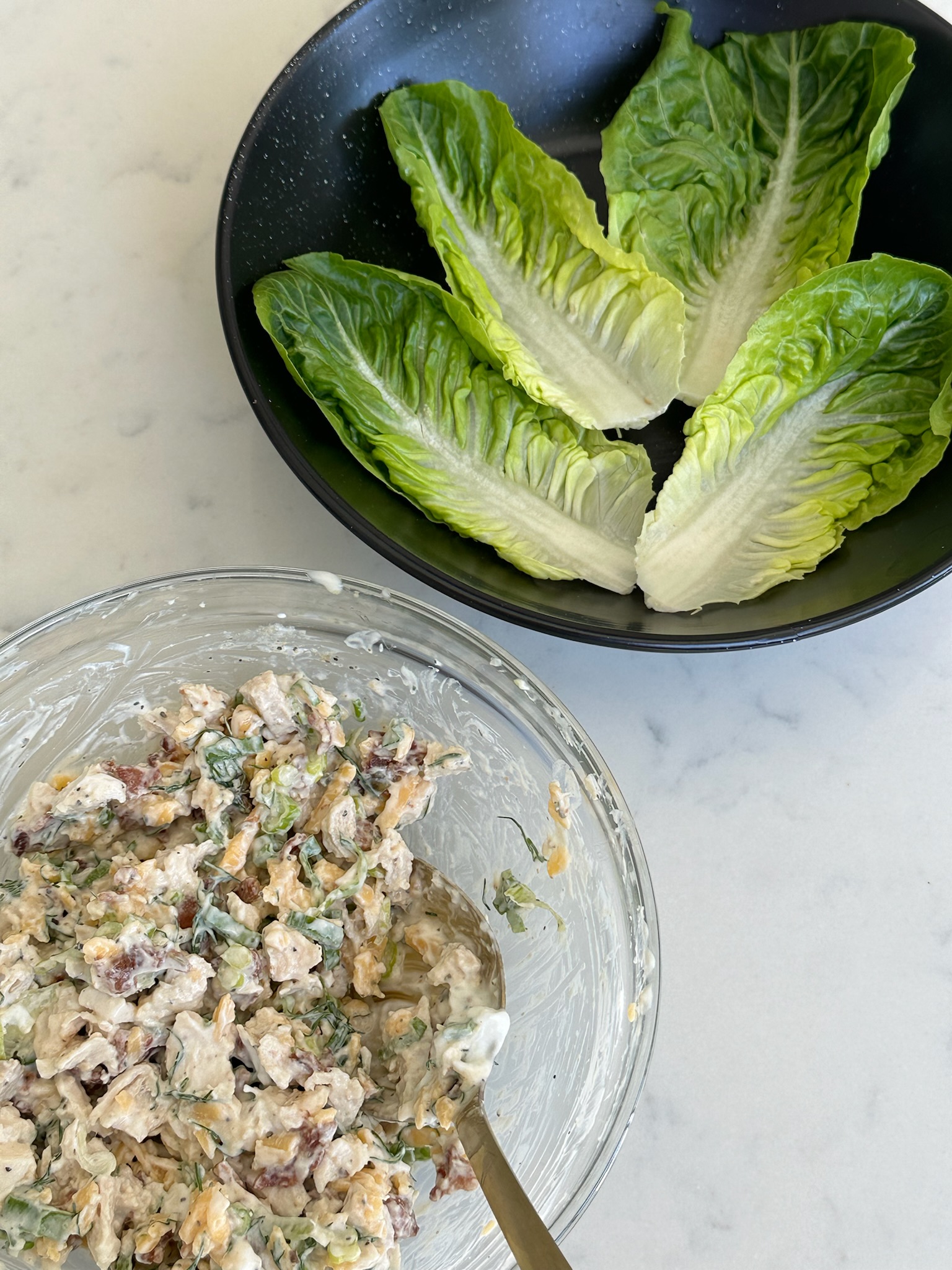 This easy low-carb, high-protein lunch is so easy to make and packed full of flavor! It’s amazing for meal prep too because you can prep the chicken salad before hand for a quick and easy lunch!