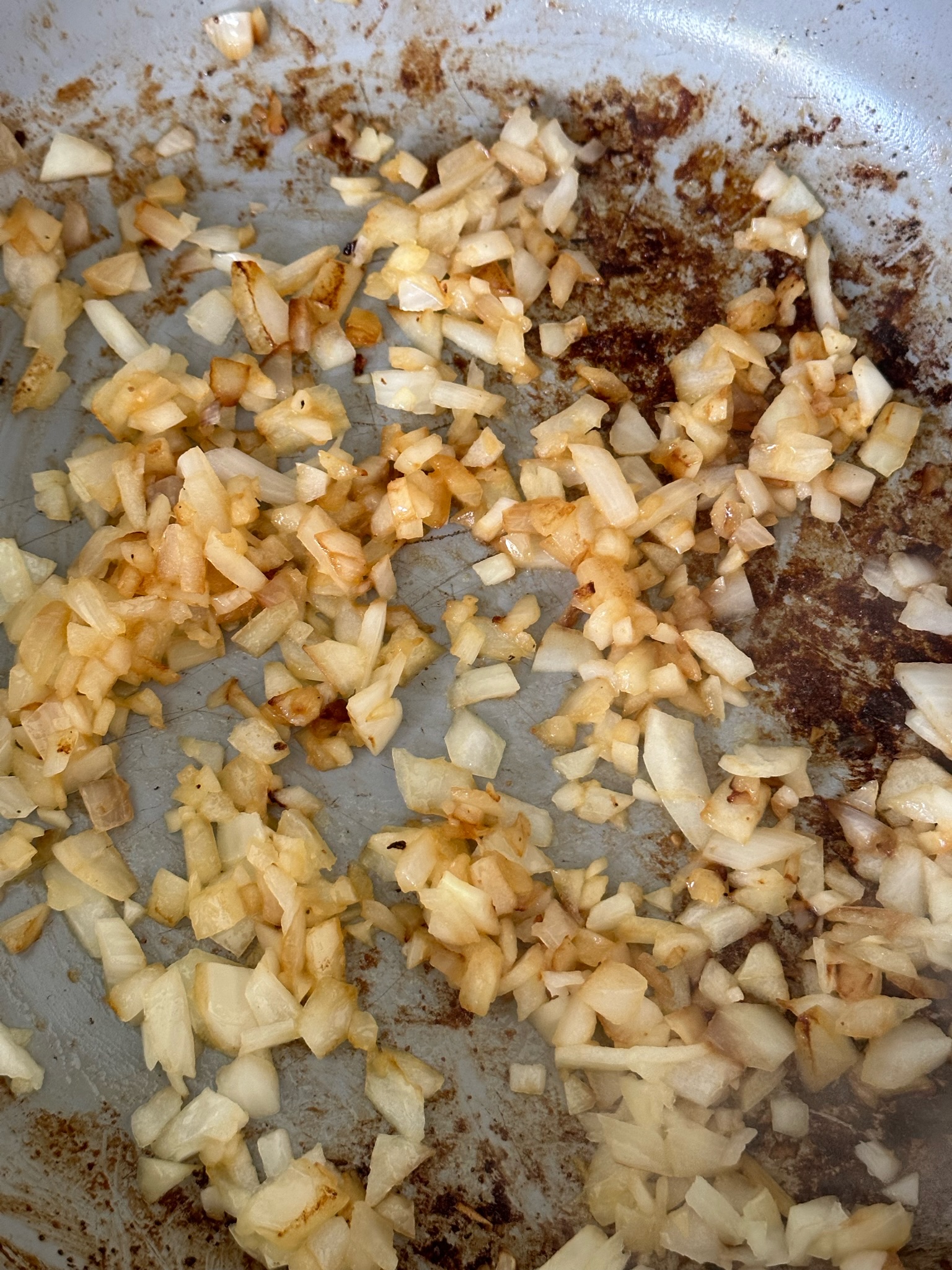 Dice your onion and chop your broccoli florets into even-sized pieces. Set aside to cook after your chicken!