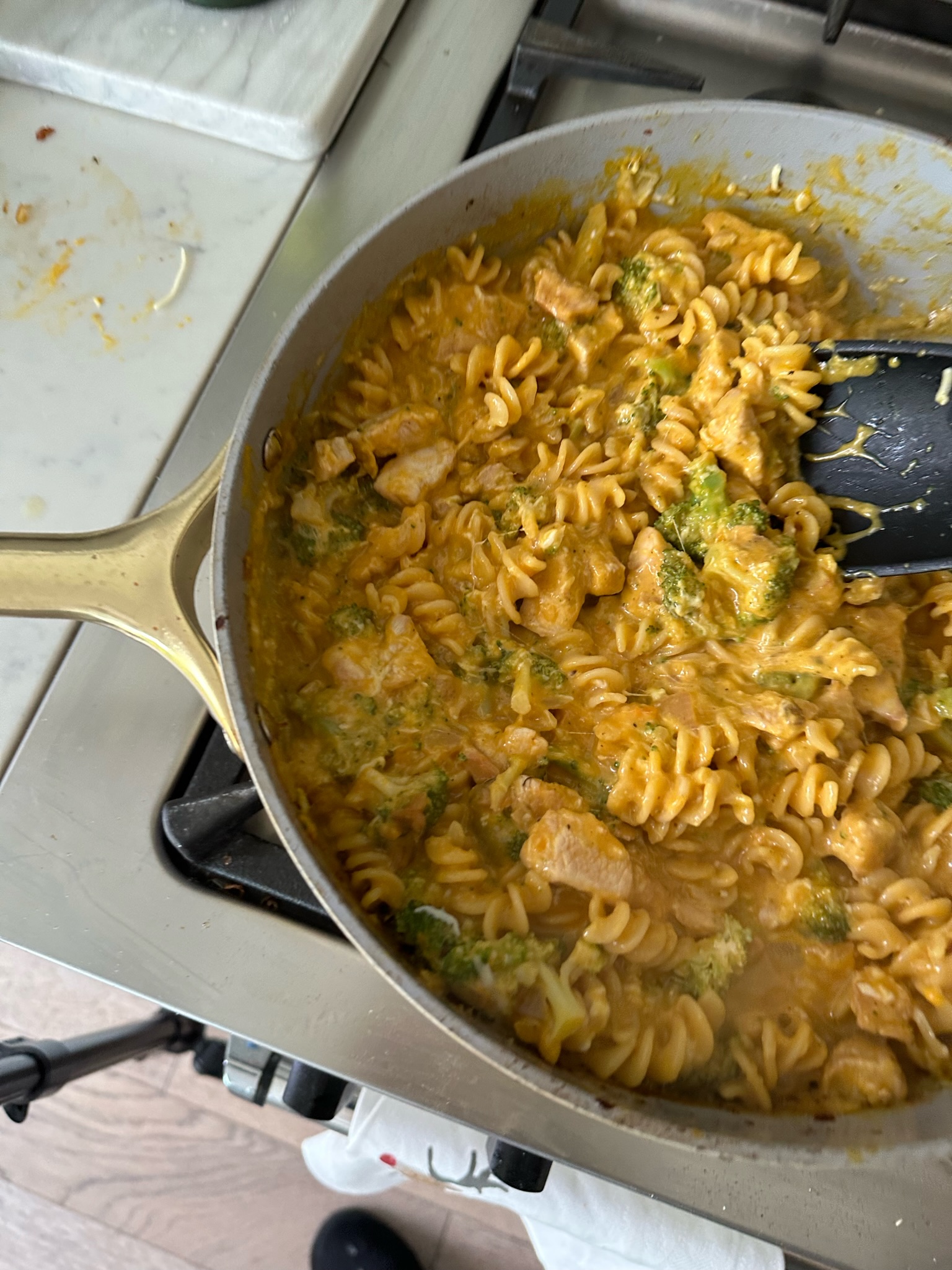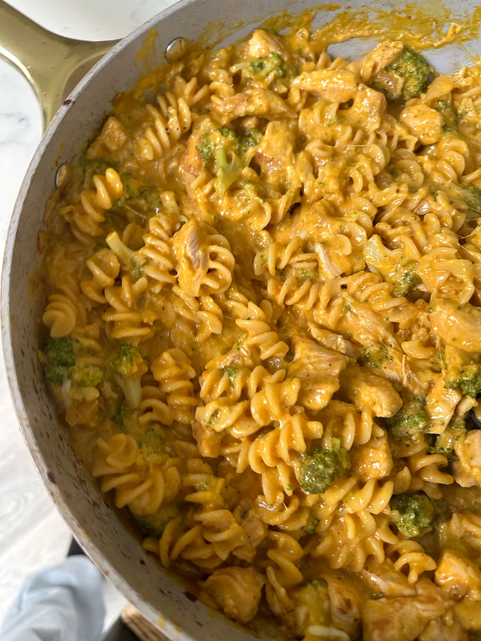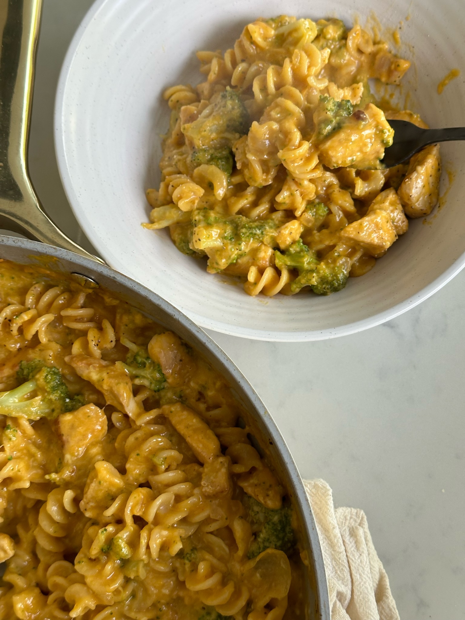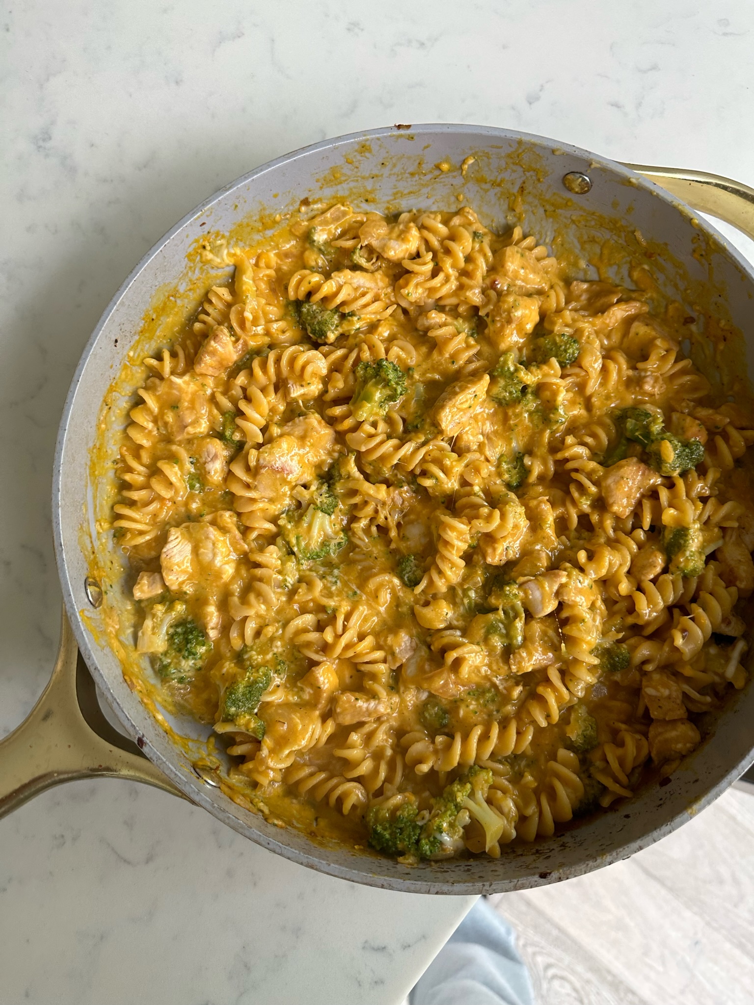 HONEYYY I’m home!! And craved a nutritious yet hearty home cooked meal.. so I immediately made this chicken + broccoli butternut squash pasta!! I’m not going to say it’s quick, BUT it is simple! And most of the recipe requires on pan! (Yay less dishes!) Make sure to SAVE this recipe to try for your next home cooked weeknight meal!