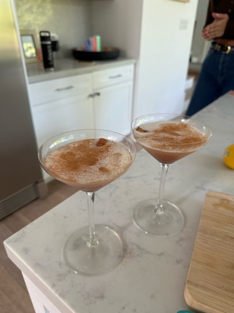 Fall cocktail idea with your girls: Cinnamon tequila sours – and make them vegan!!! Instead of egg whites, we’re using chickpea juice and it ACTUALLLLY works and you can’t taste it!!!!