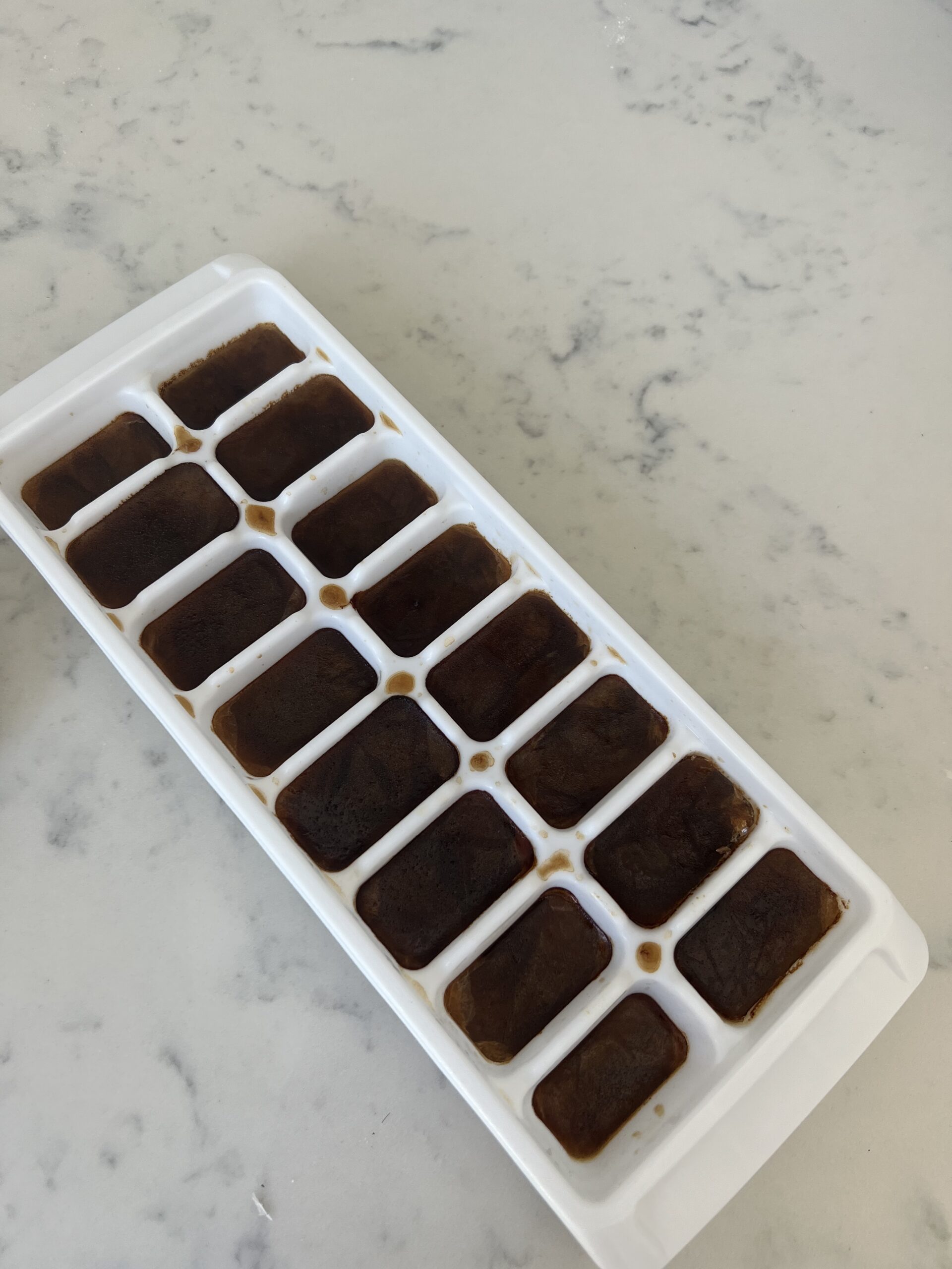 Pour your coffee into ice cube trays and freeze. For best results, I highly recommend freezing overnight – but if you’re in a hurry, a few hours till they’ve frozen should be fine.