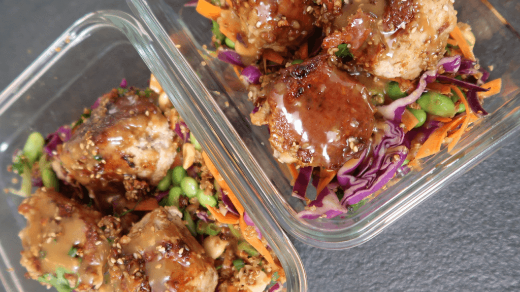 This week, we’re making High-Protein Asian-Style Quinoa Crunch Salad + Teriyaki Turkey Meatballs—a meal that’s perfect for meal prep and absolutely packed with flavor. It’s not just delicious; it’s loaded with nutrients to keep you energized and satisfied throughout the day. With the perfect balance of crunchy textures, savory flavors, and wholesome ingredients, this dish is a total game-changer for your weekly routine. Say goodbye to boring meals and hello to a recipe you’ll actually look forward to eating!