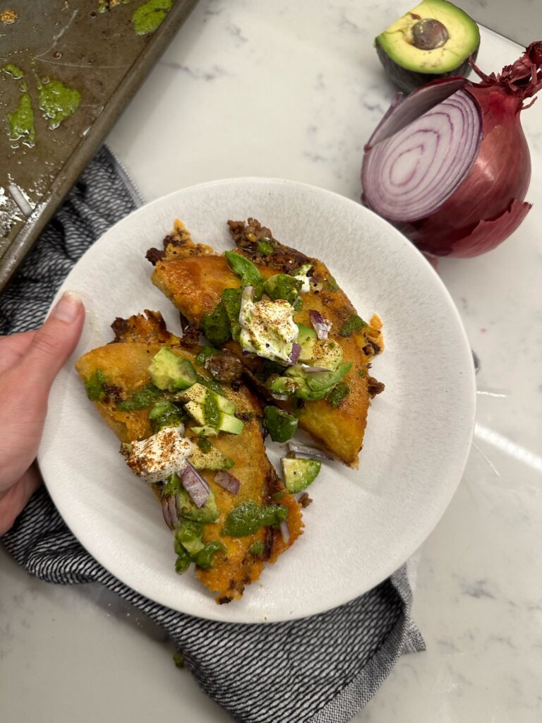 Top with diced avocado and a dollop of your Greek yogurt, and enjoy! xx