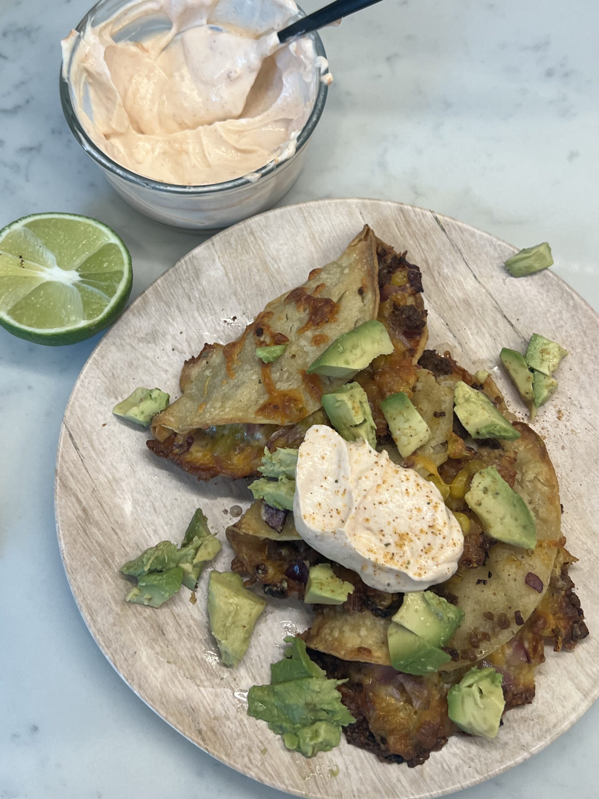 Top with diced avocado and a dollop of your Greek yogurt mixture, and enjoy! xx