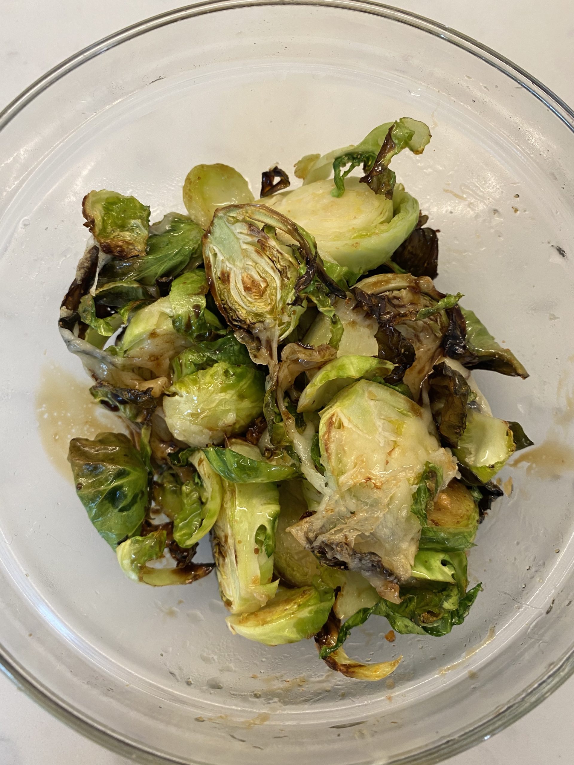 Transfer the crispy, cheesy sprouts to a bowl and drizzle with balsamic glaze! It’s a perfect combination of sweet and salty!