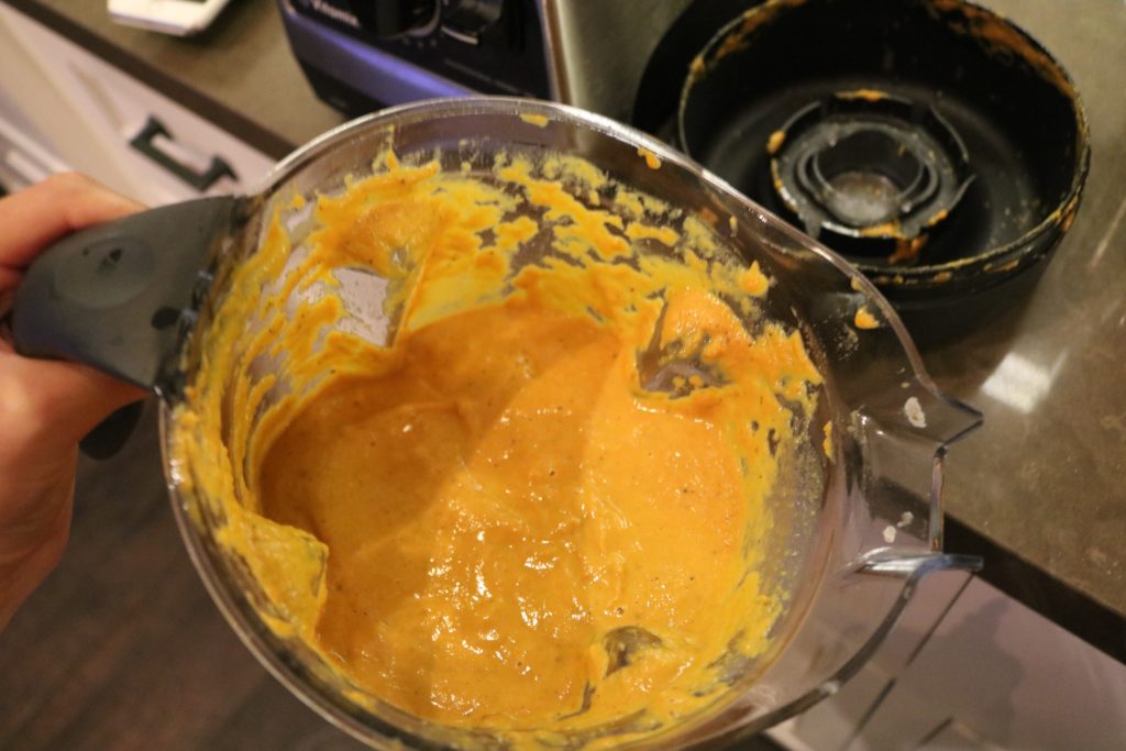 Blend it all up, then place it BACK into the saucepan to simmer and reheat all the flavors together.
