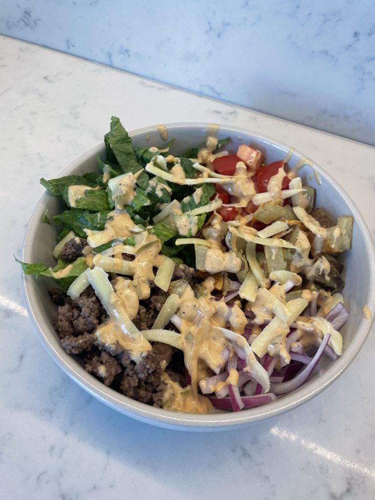 Sexy sauce (as I like to call it lol): 2 tbsp ketchup, 2 tbsp relish, 2 tbsp mustard, 2 tbsp mayo, splash of apple cider vinegar, salt & pepper (or just equal parts mayo, relish, ketchup, and mustard!!)