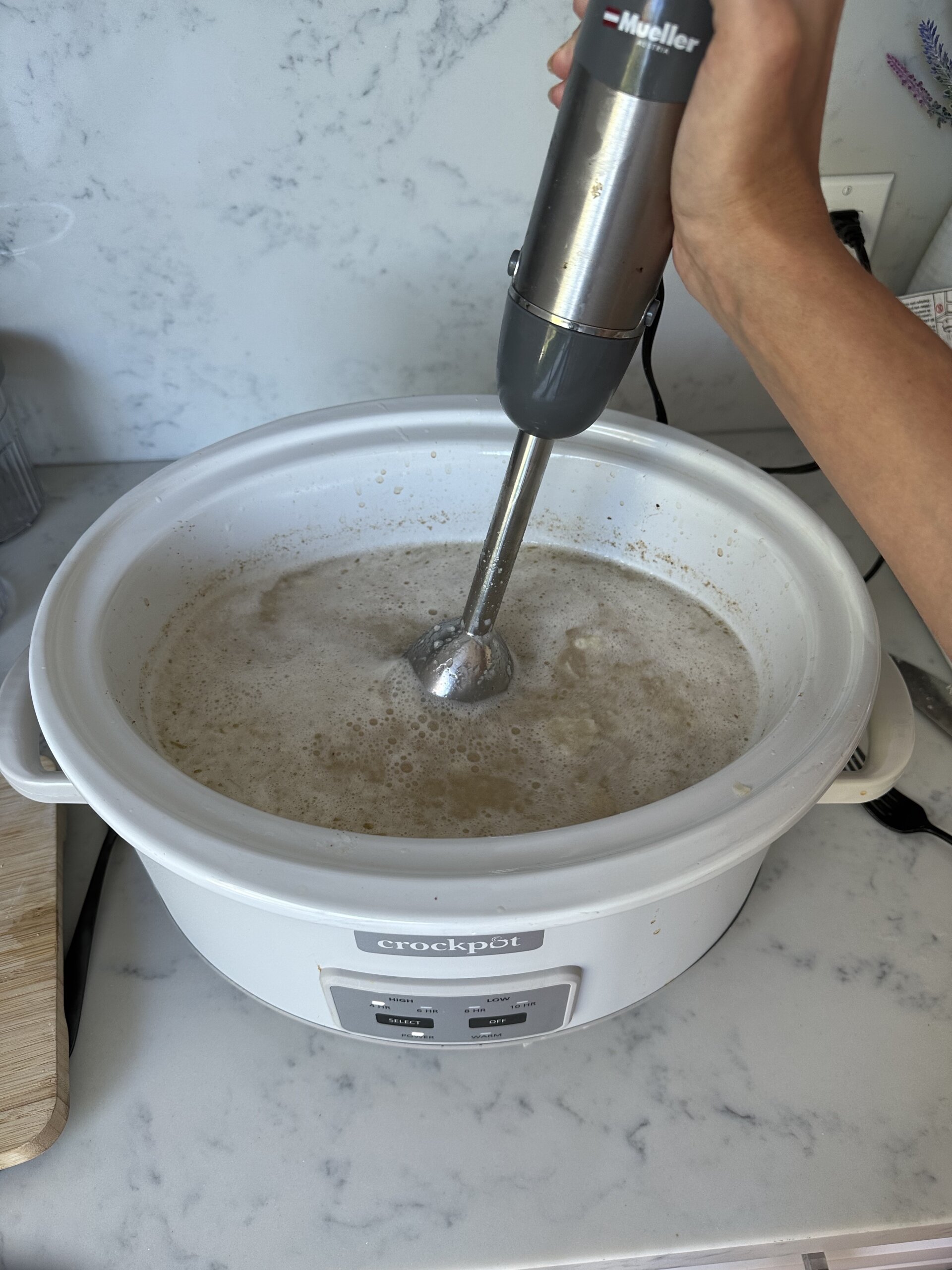 Use an immersion blender to smooth the potato & cauliflower into a creamy, smooth texture.