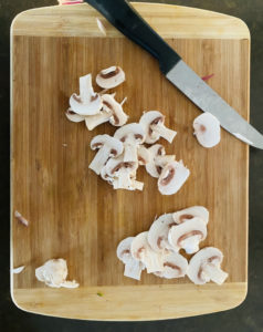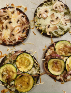 While your “crust” is in the oven, you can slice up your red onion, zucchini and mushrooms and lightly sauté on your stovetop so that the veggies cook down a bit!