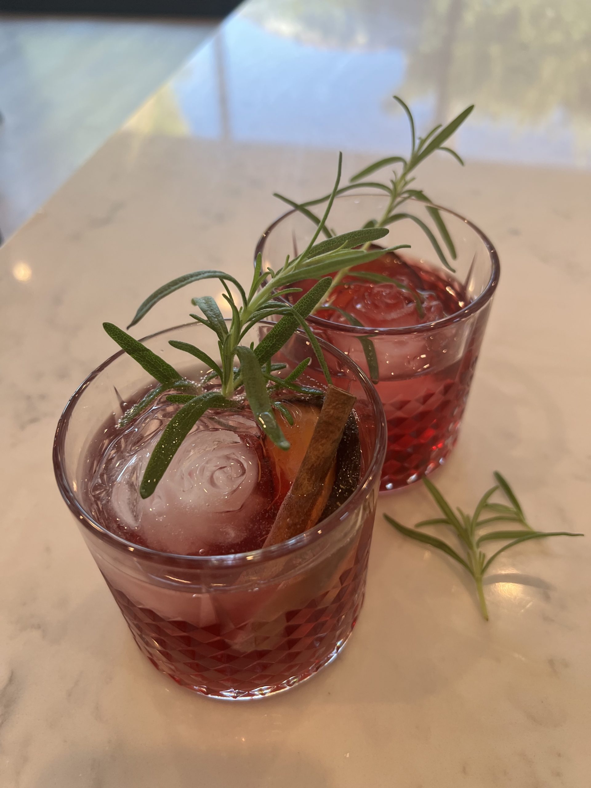 Garnish: Orange Slices, Rosemary, Cinnamon Stick