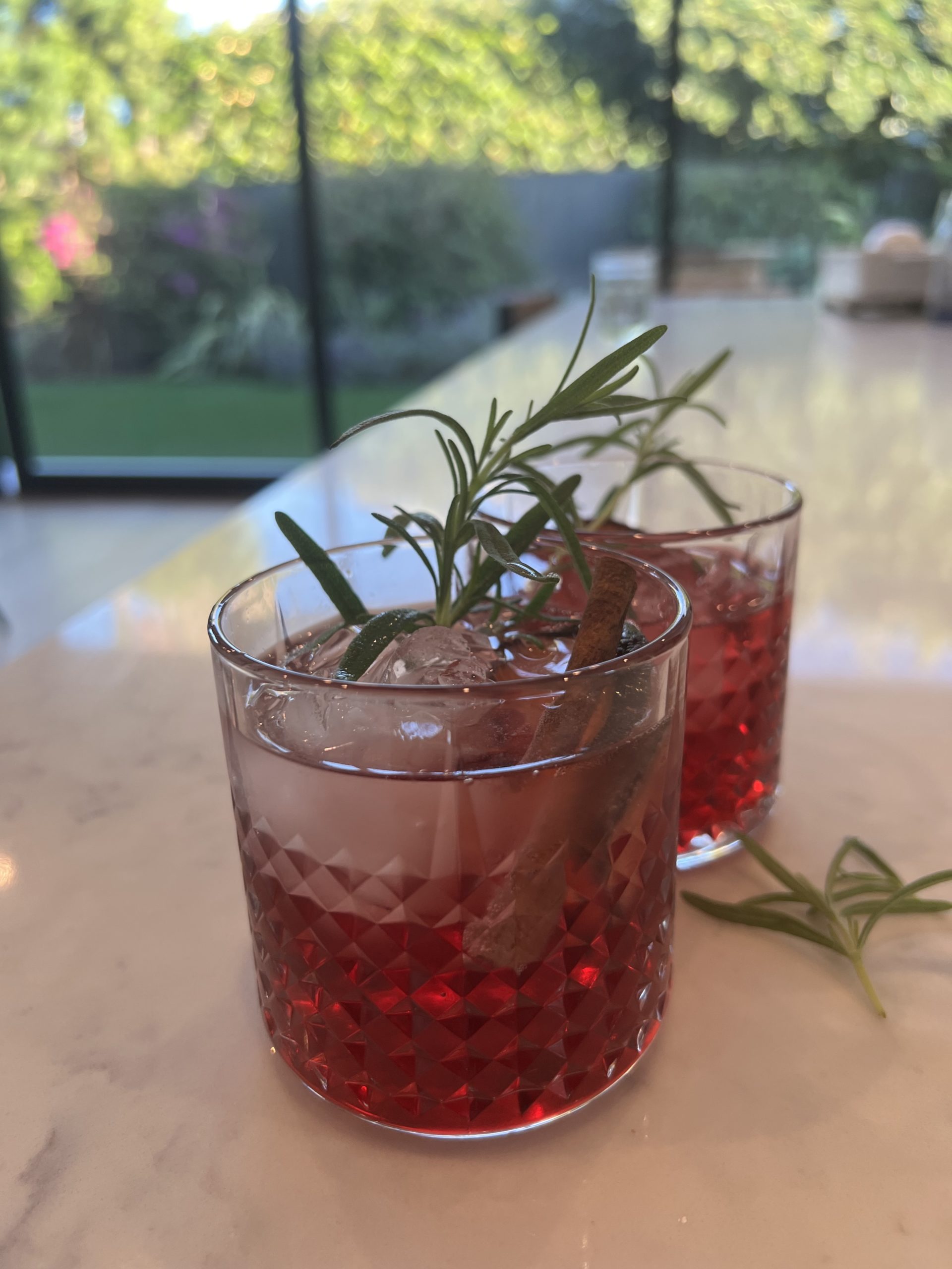 Combine your Vermouth, Campari, Prosecco and Cranberry juice in a glass over ice, then garnish with your dried oranges, rosemary and cinnamon!