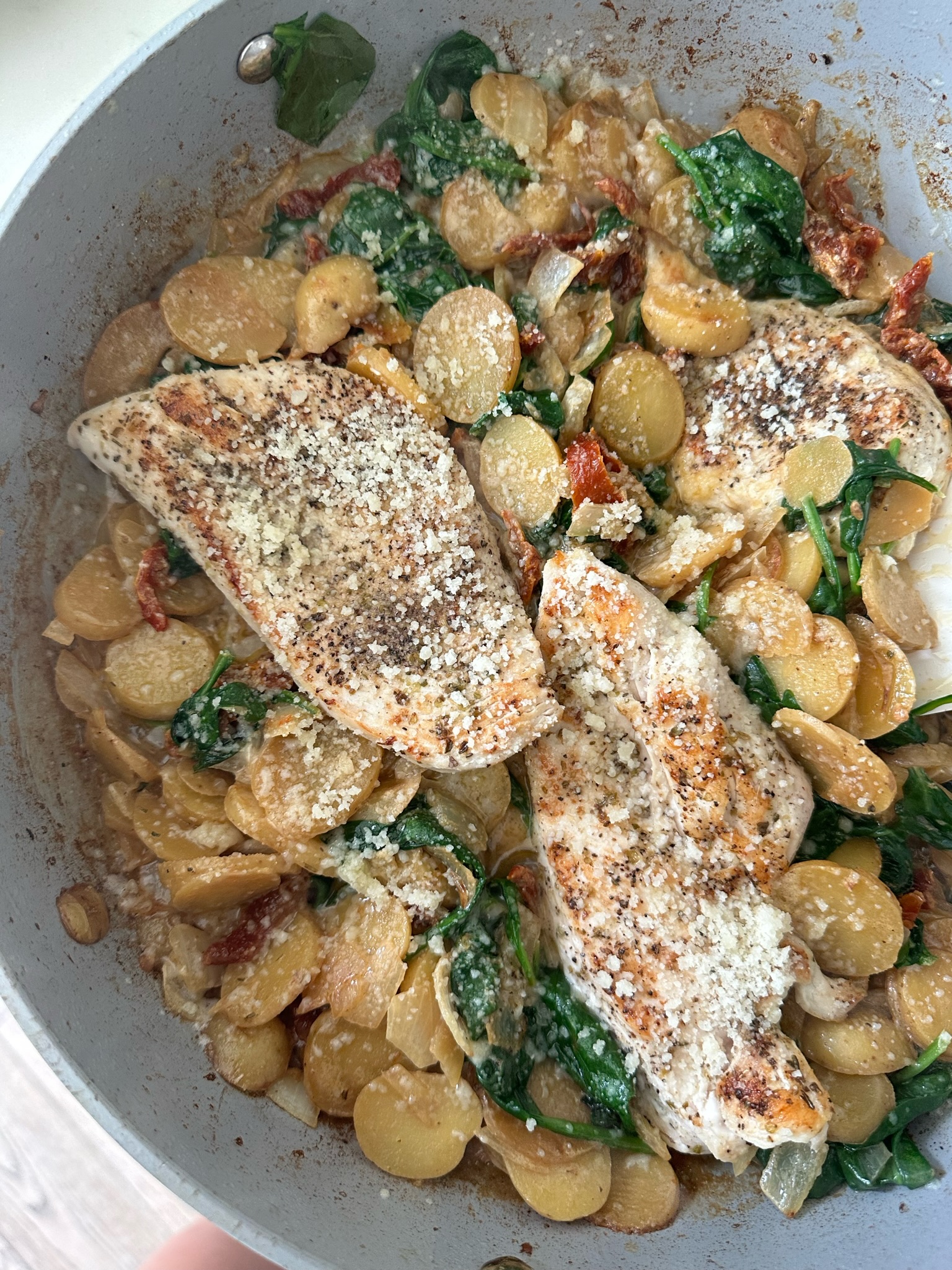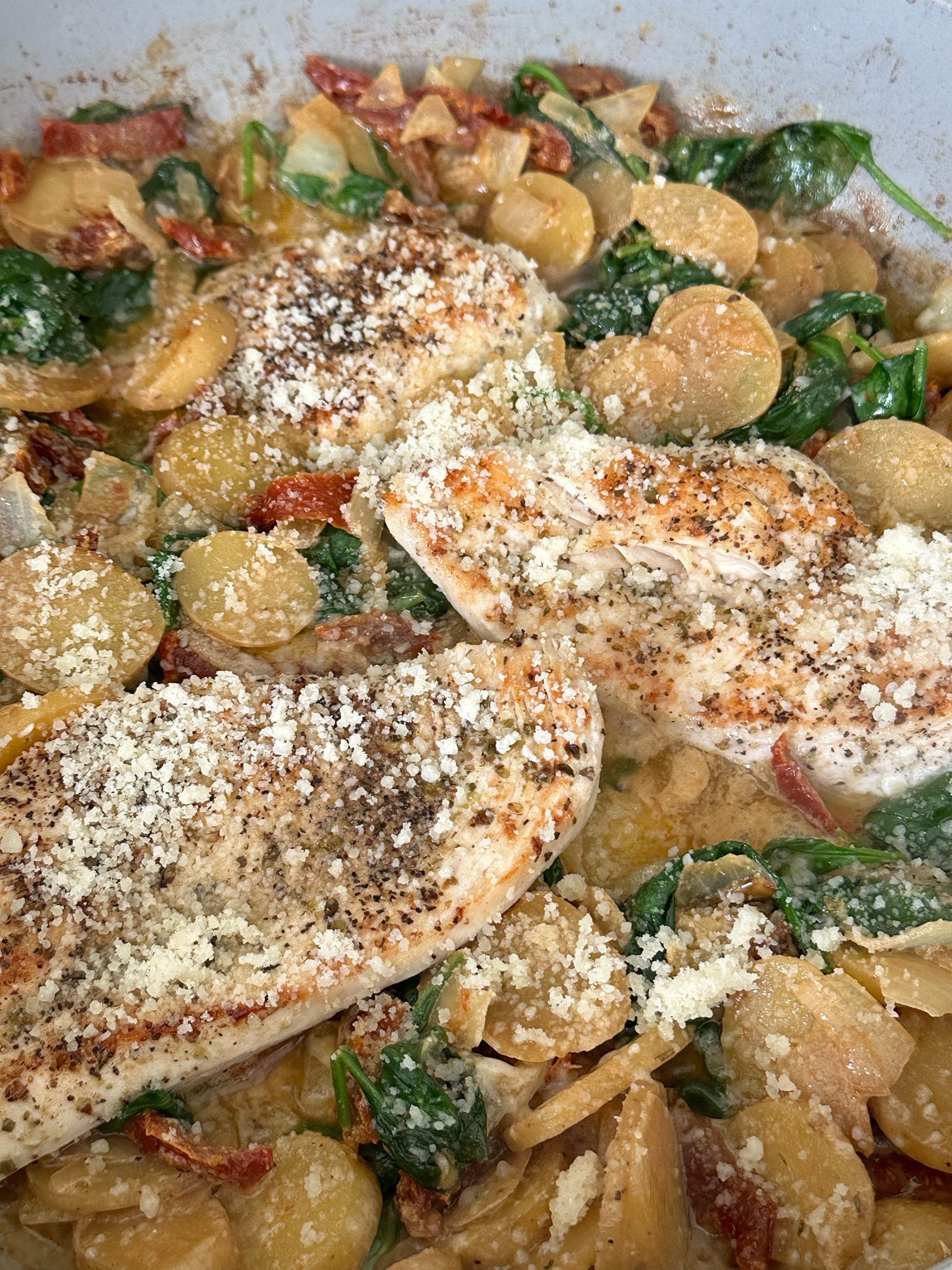 Indulge in the rich & creamy flavors of my One-Pan Tuscan Chicken & Potatoes recipe. This easy one-pan dish will defintely help make those weeknight dinners so much easier. It’s packed full of flavor and the best part? Less dishes!