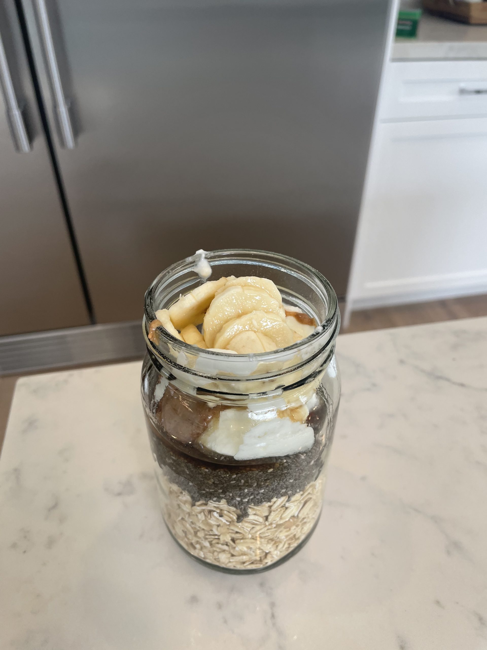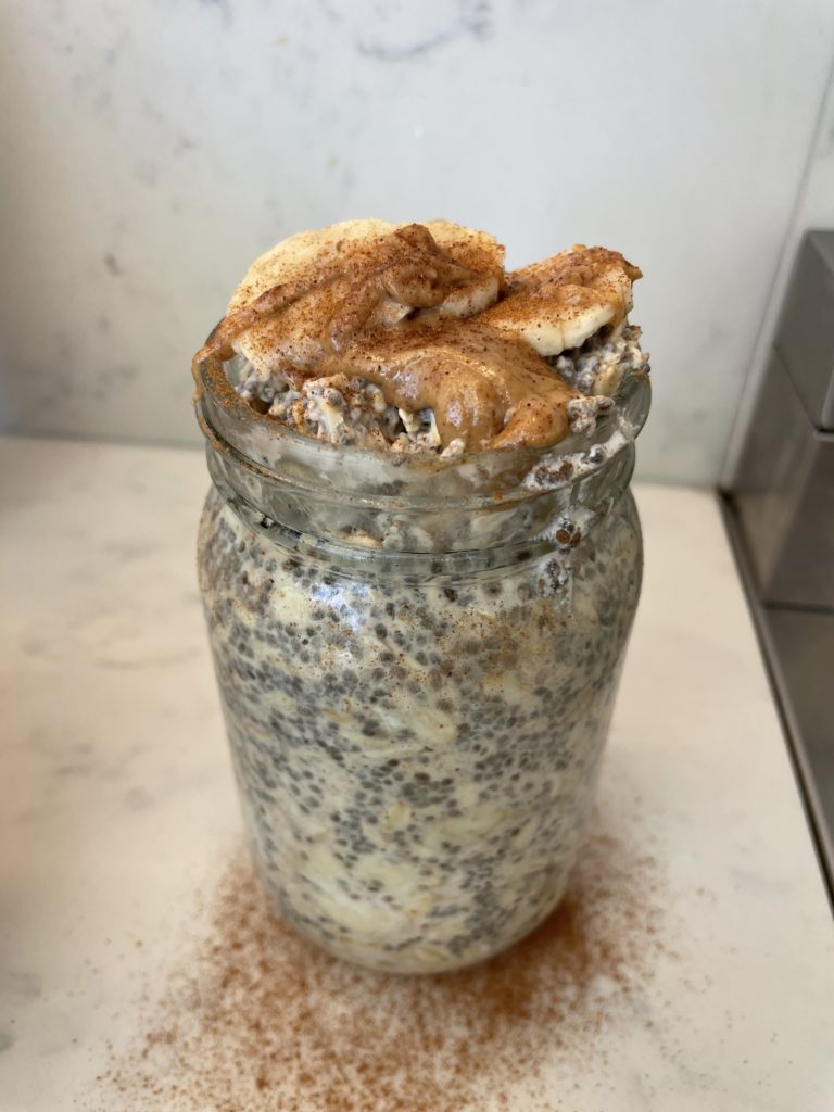 Once the oats are set, I like to top mine with some more almond butter, banana slices and cinnamon!