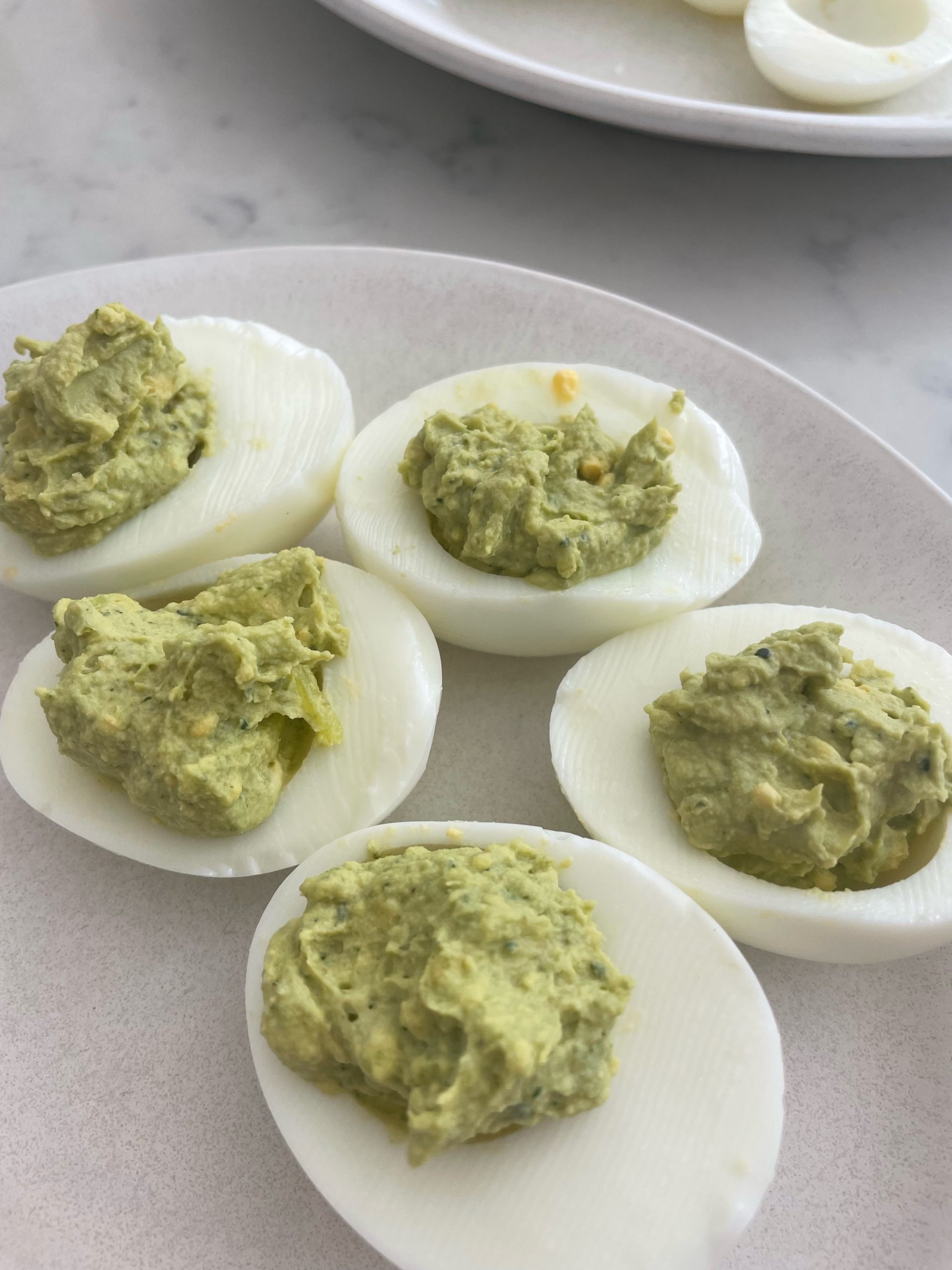 Don’t knock it till you try it! Decided to combine two of my favorite things today…PESTO and DEVLED EGGS! And you the end result was truly SO GOOD!