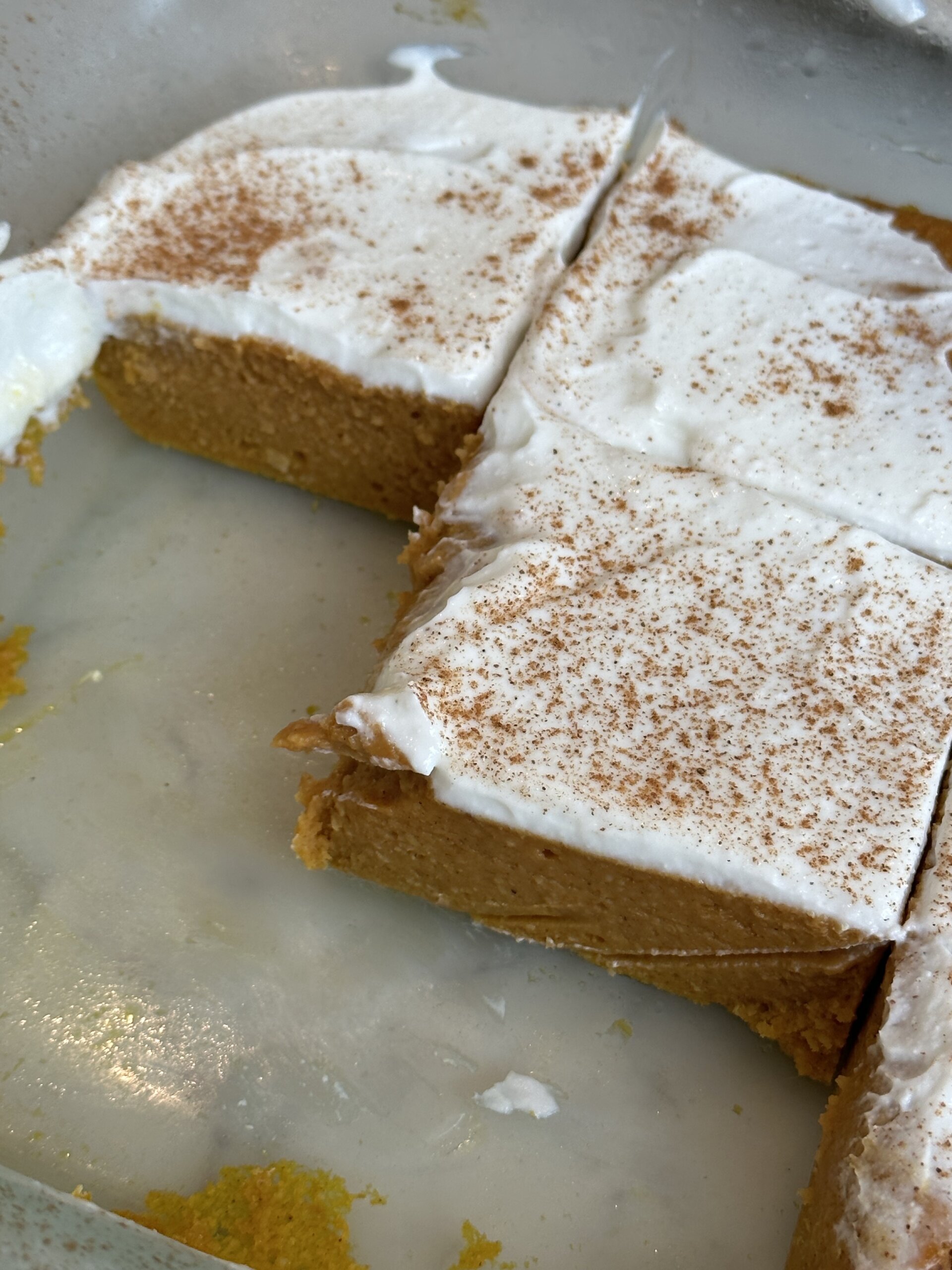 Sprinkle with more pumpkin pie spice or cinnamon, cut into squares & enjoy!! Feel free to add a little whipped cream too! YUM!! xx