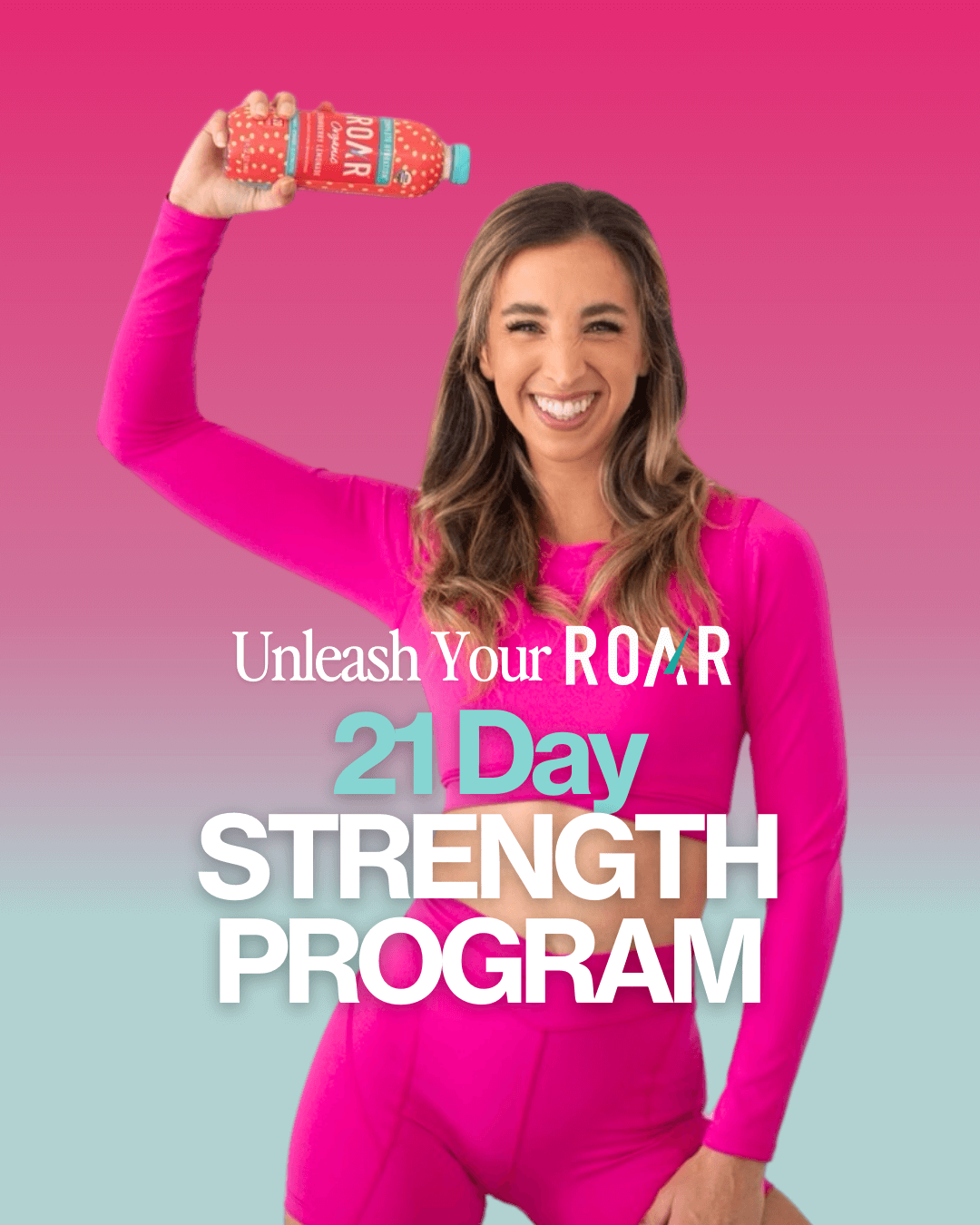 The “Unleash Your ROAR: 21-Day Strength Program” is a 3 week journey to discover how powerful you truly are, inside and out. Over the next 21 days, I want you to fall in love with exercising and PROGRESS, because that’s what it’s all about. I have amazing new workout classes inside this program, from upper body strength, to power pilates, to FUN cardio, to glute power sessions. Every week I want you to set a goal to try your best to up the weight for the classes, yet every day, you’ll feel the burn and leave feeling stronger.