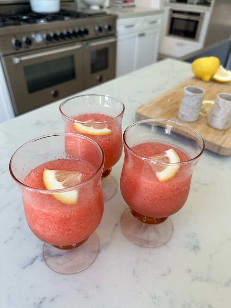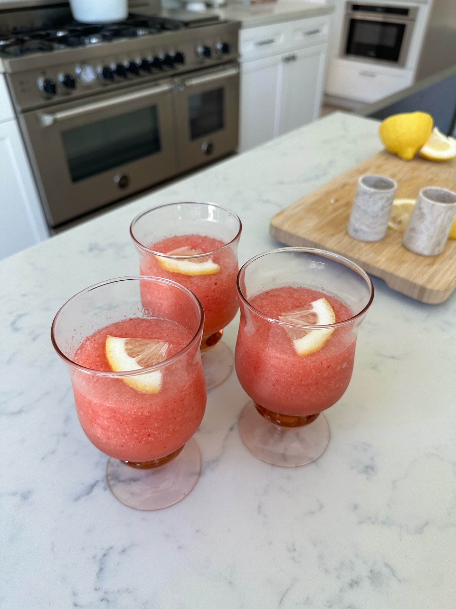 Blend until smooth, top with your garnish of choice, (I used lemon slices), and enjoy!! Cheers!! xx