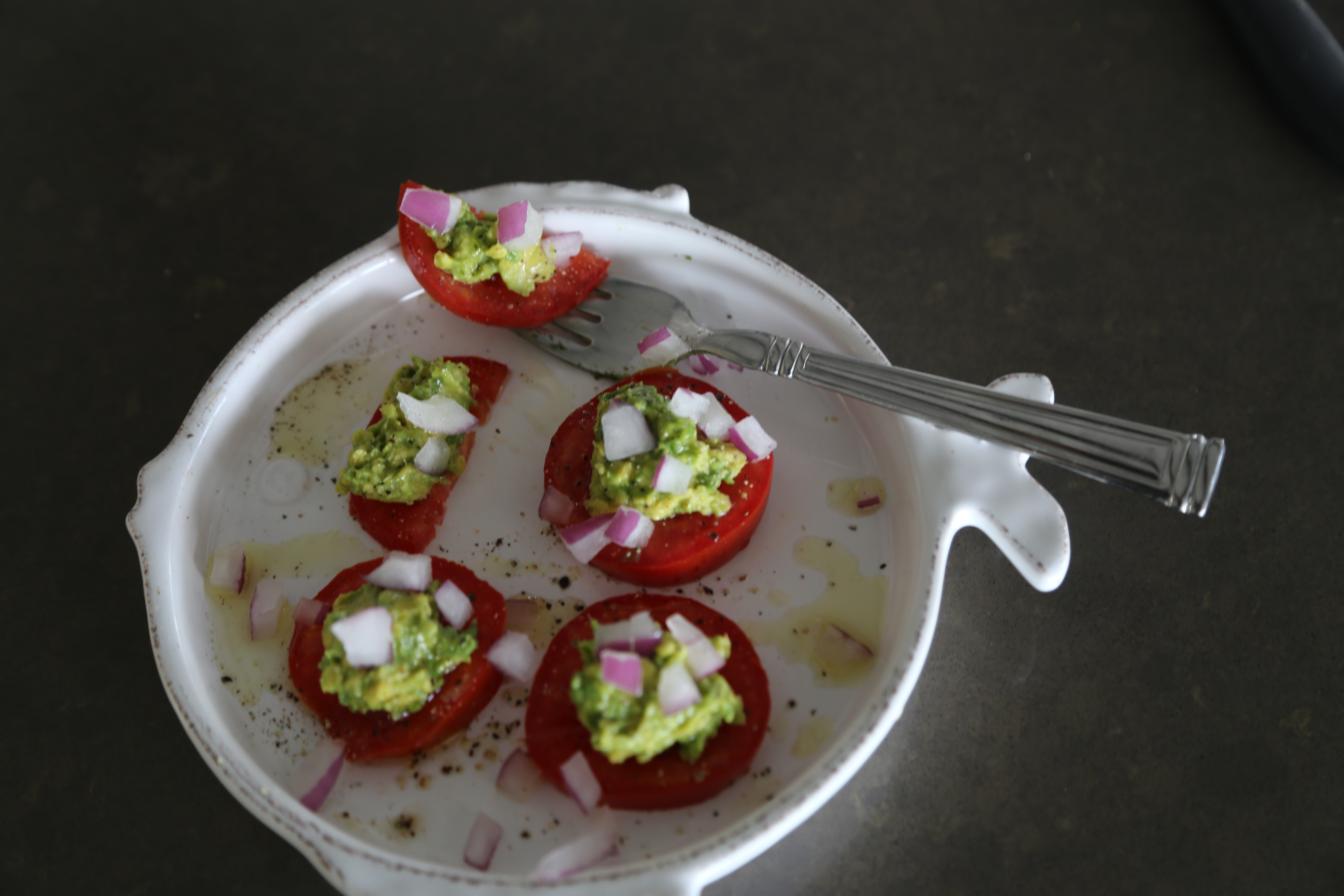 So my favorite snack almost ever is tomatoes and mozzarella. And for the past three months I have cut out cheese, and so this is my new love!